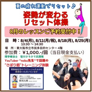 8月のレッスン案内 💫姿勢が変わる リセット体操💫