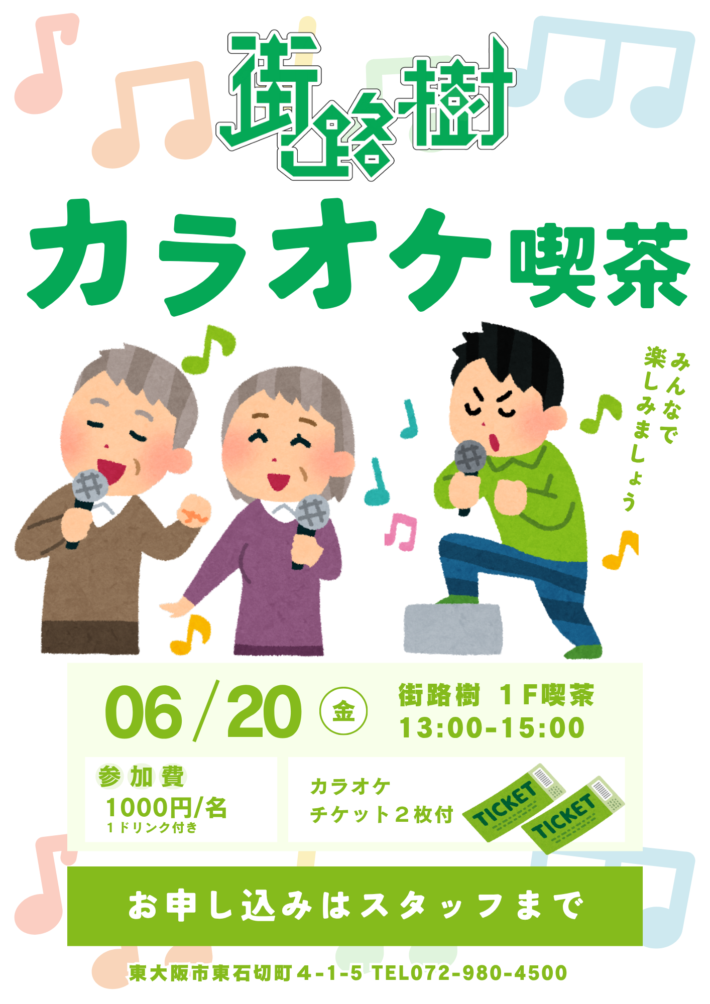 - 6月20日(金) 【街路樹カラオケ喫茶イベント開催】